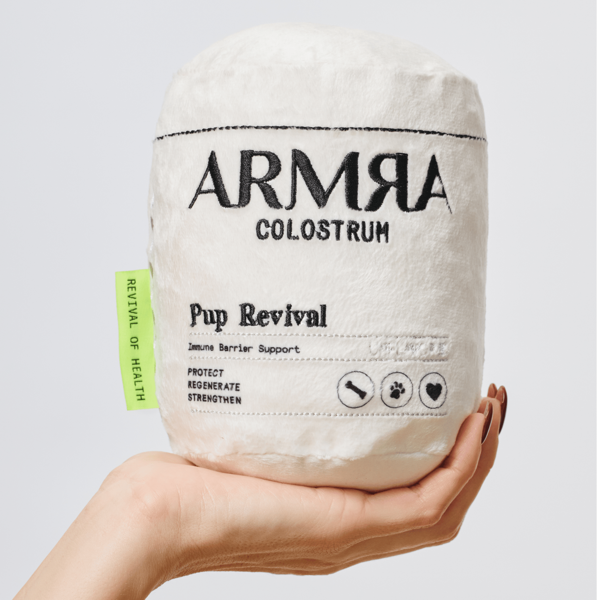 Paws for revival with the Pup Revival Dog Toy. This ultra-soft, plush toy packs a squeaker and crinkle paper for next-level playtime. Beyond a dog toy, it’s also your daily reminder to hit pause and fuel up with ARMRA for whole-body health. Because more revival for you means more walks and cuddles for you know who.